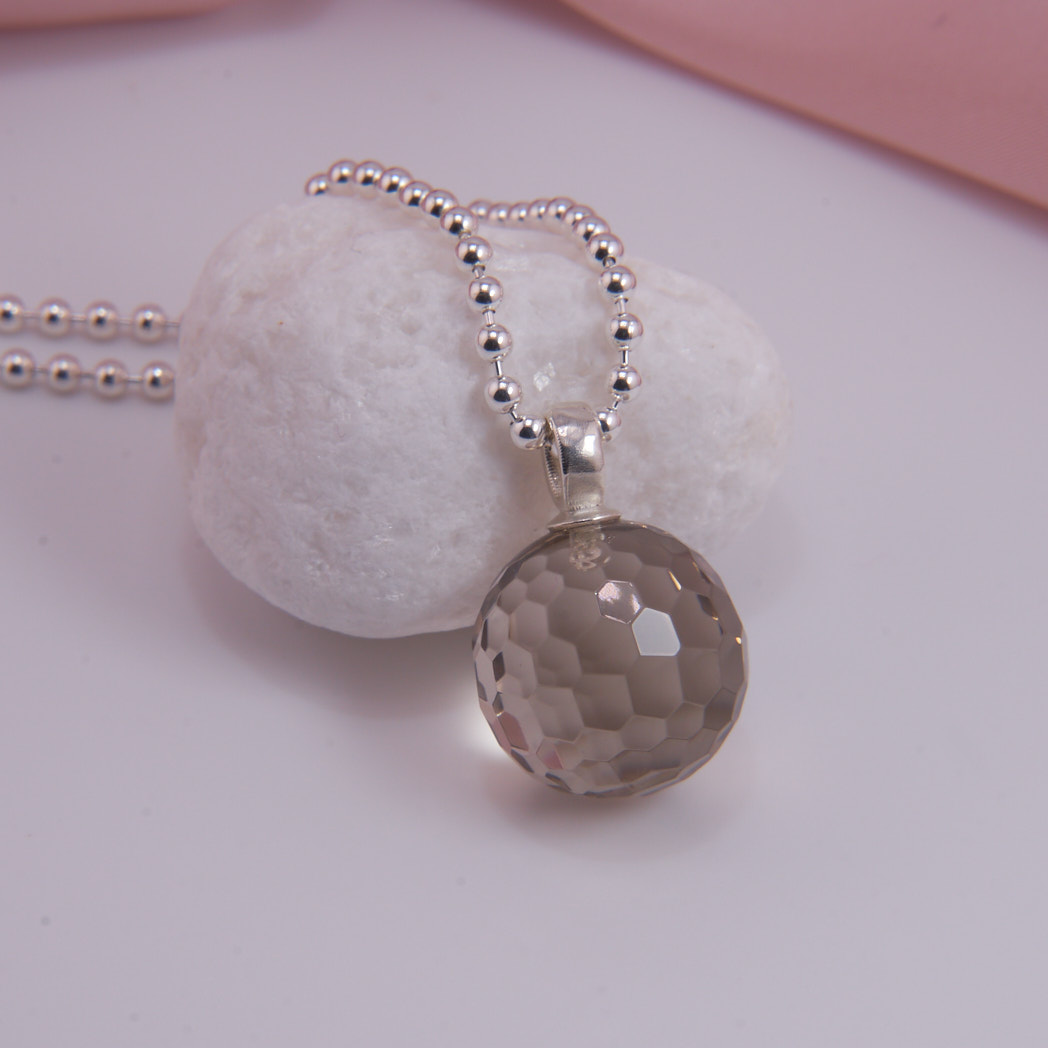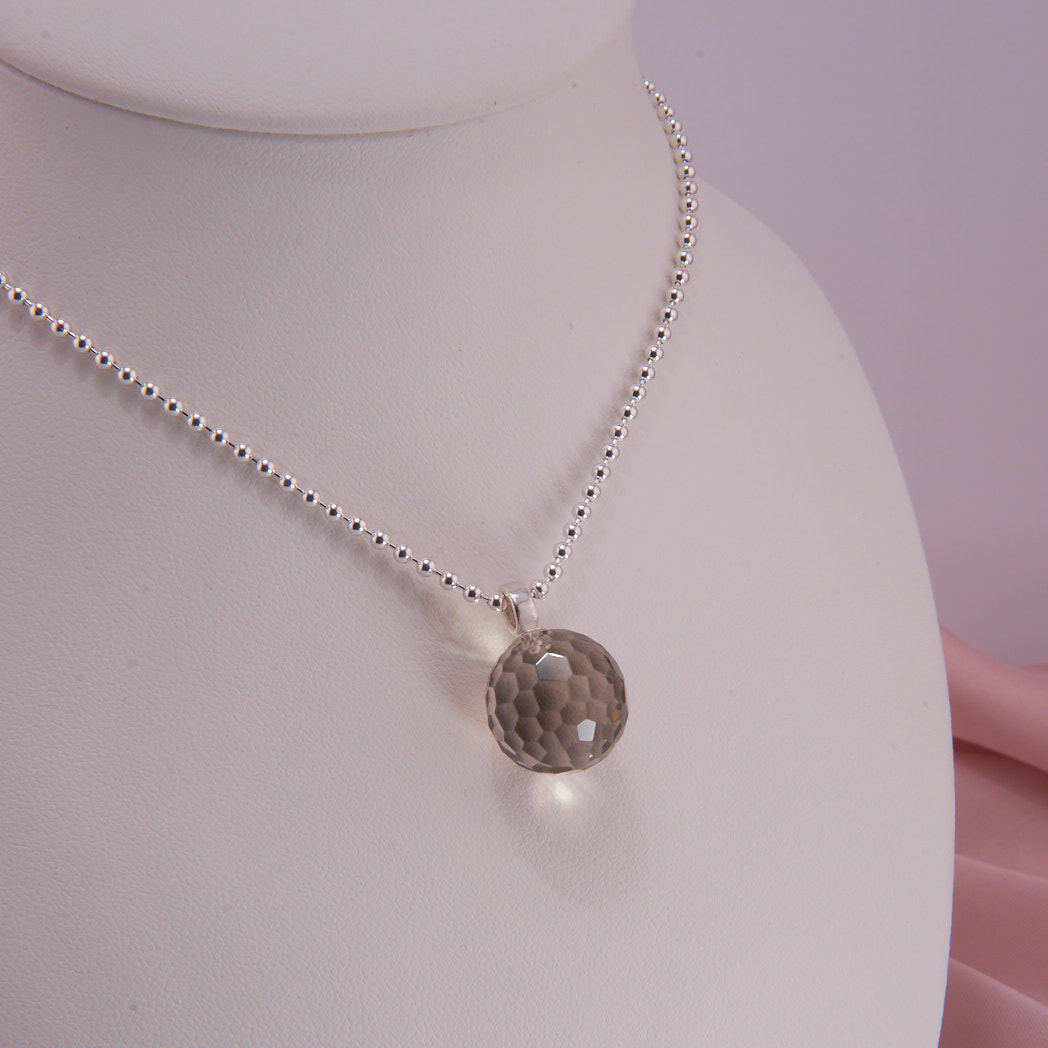 Großer Rauchquarz Kugel Anhänger, facettiert, mit Sterling Silber Öse. Ausführung inkl. Kette finden Sie hier.