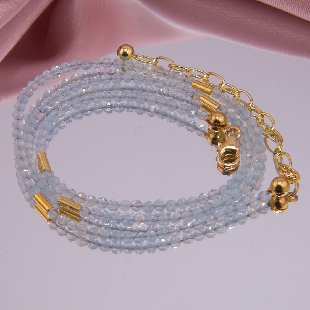 Filigrane Aquamarin Kette mit wunderschönen, facettierten Aquamarinen veredelt mit eleganten, vergoldeten Sterling Silber Röhrchen für eine sportliche Trägerin. Auch sehr gut als Layering Kette geeignet.