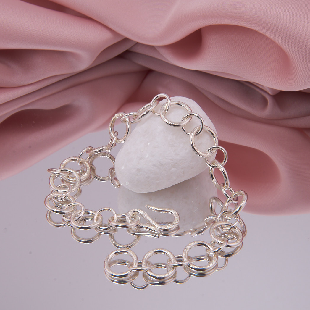 Sterling Silber Glieder Armband mit faszinierender Lichtreflexion. Moderne, gerillte Oberfläche der Armband Elemente fasziniert bei jeder Bewegung, denn es benötigt ganz wenig Licht um die feinen Rillen zum Strahlen zu bringen. Elegant und einzigartig spricht das Design alle Liebhaber der Lichtreflexion an.