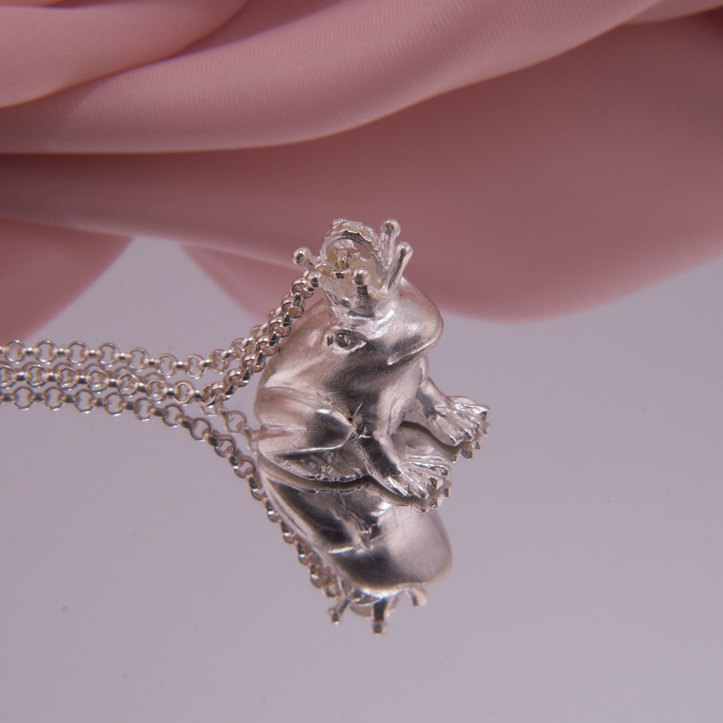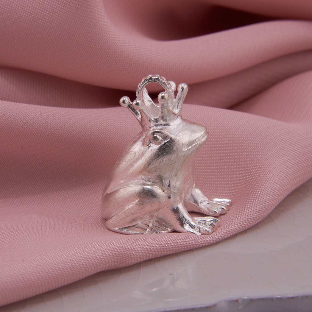 Großer, massiver Froschkönig aus Sterling Silber, ideal für lange Ketten ab 70 cm Länge. Mit einer Höhe von ca. 21 mm und einer Breite von ca. 15 mm ist das kleine Kerlchen unübersehbar. Ausführung ohne Kette finden Sie hier.