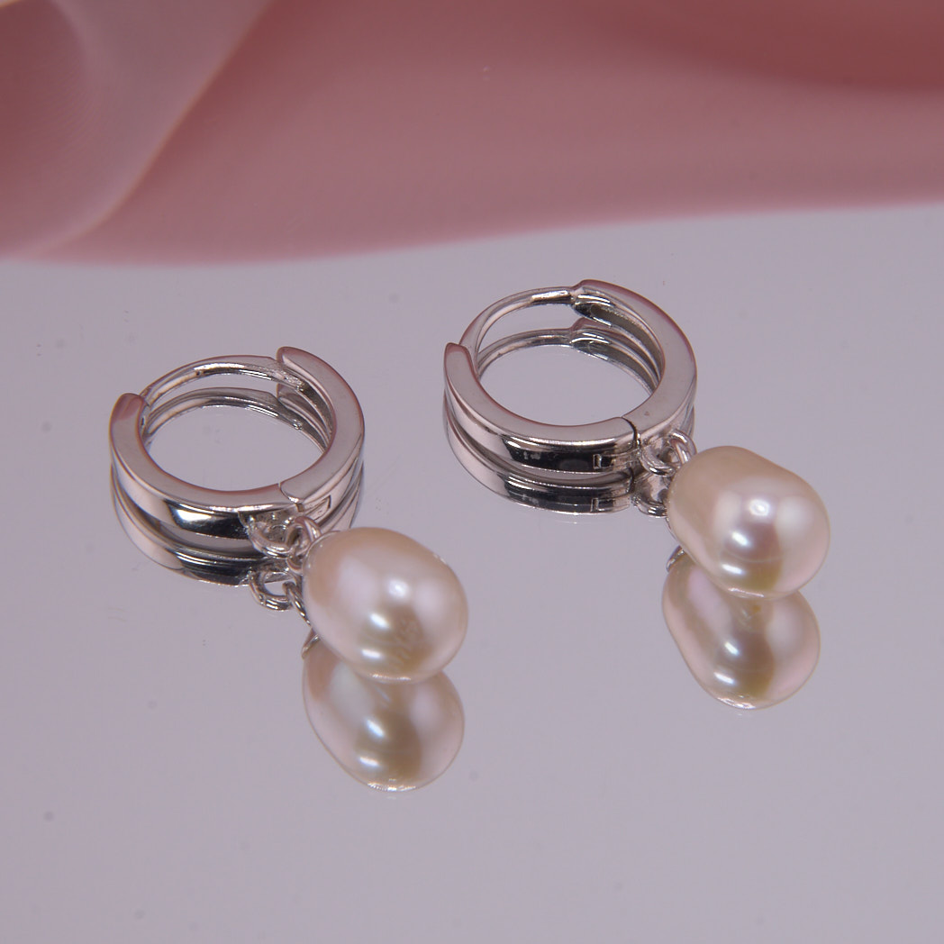 Rhodinierte Sterling Silber Klapp-Creolen mit weißen Perlen. Moderne, stylische Alltagsbegleiter.