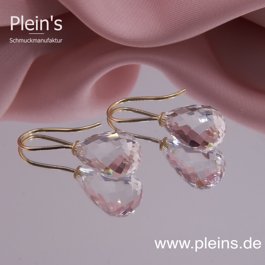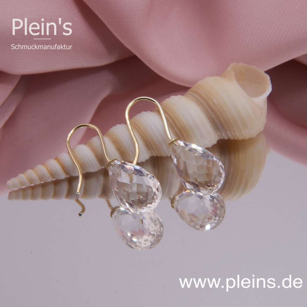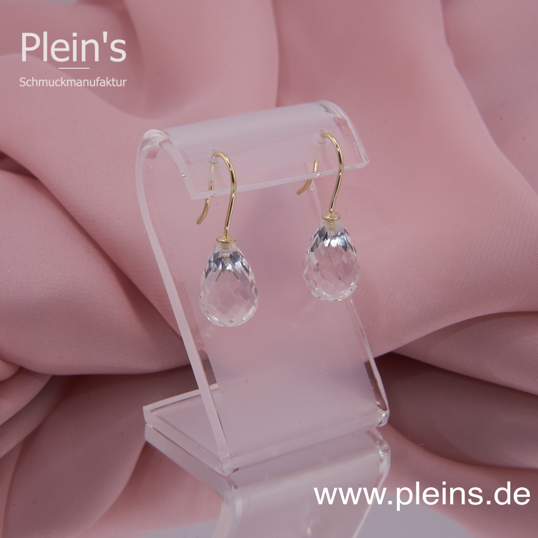 Funkelnde Ohrhänger aus 585 Gelbgold mit zauberhaften, facettierten Bergkristallen in Pendel-/Tropfen Form.