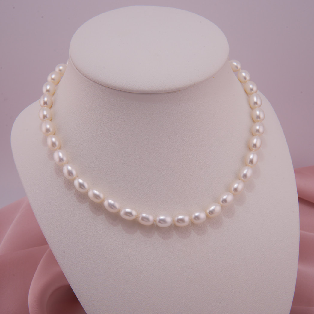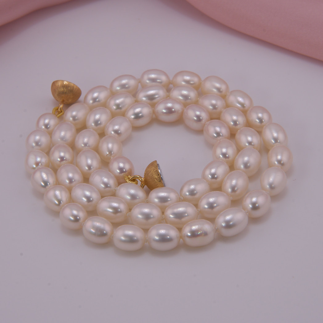 Elegante Perlenkette mit vergoldetem Sterling Silber Magnetverschluss. Große, weiße Perlen in Tropfenform, mit einem feinen Schimmer. Ein Allrounder, für elegante Business Outfits, als Sommerbasic oder als Brautschmuck. Handgeknotet in unserer Werkstatt.